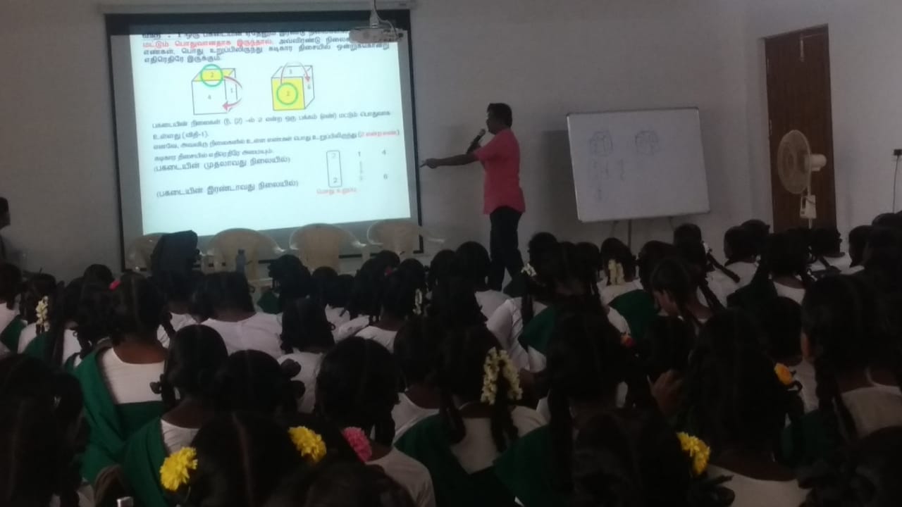 8 ஆம் வகுப்புமாணவிகளுக் கான தேசியவருவாய் வழி மற்றும்திறன் படிப்பு உதவித்தொகை திட்டத்தின் கீழ் மாணவர்களை தேர்வு செய்ய நடைபெறும்.NMMS தேர்வில் கலந்து கொள்ளும் தகுதியுள்ள எட்டாம் வகுப்பு மாணவர்களுக்கு தமிழ்நாடு மாநில NMMS convener திரு. மோகன் அவர்களால் MAT(Mental Ability Teas) ற்கான வகுப்பு நடத்தப்படுகிறது.